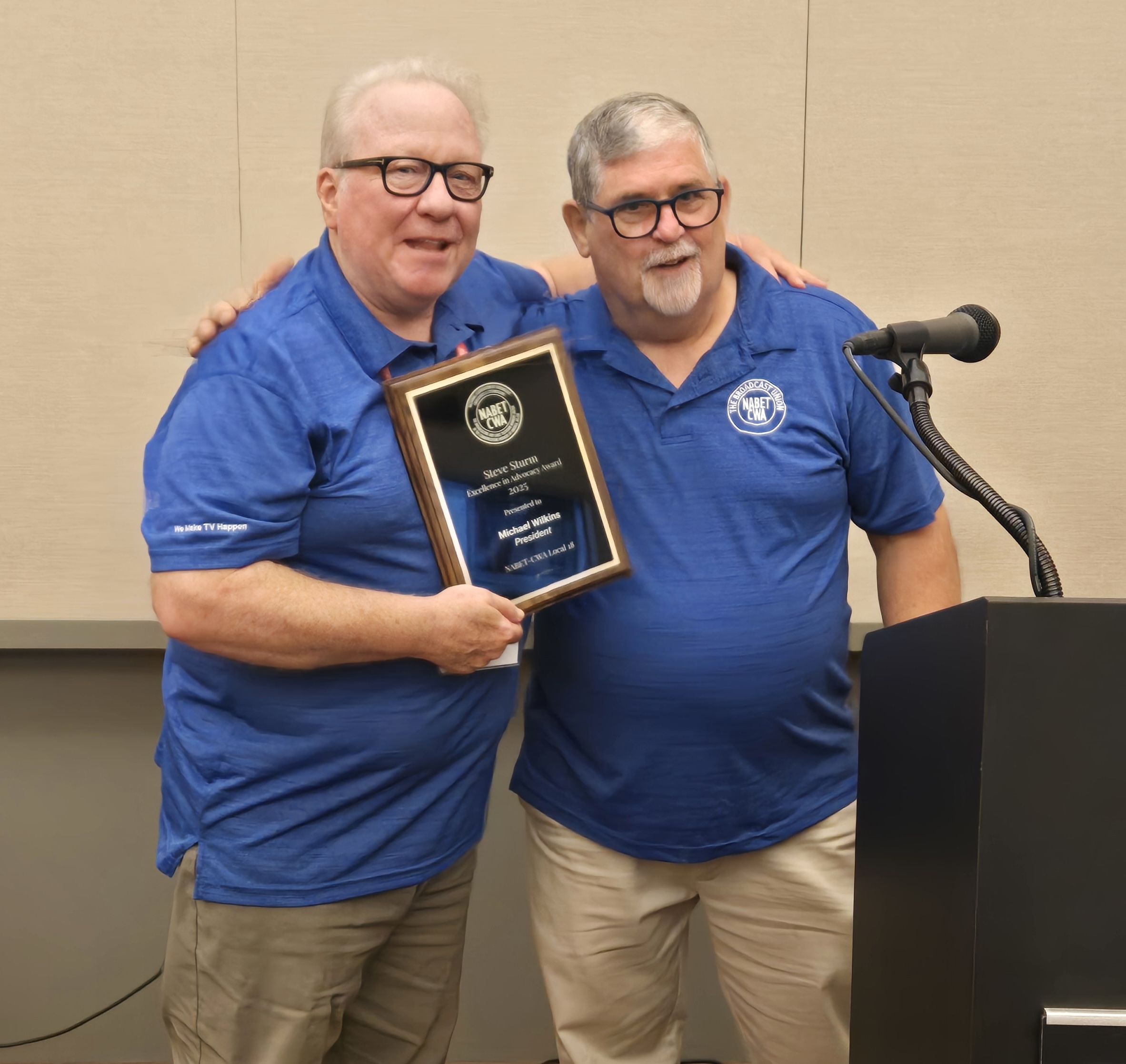 At the 2025 RAB in Pittsburgh, PA, this August, President Mike Wilkins received the Steve Sturm Award for Excellence. Each year, the Sector Executive Council presents the award to a member who has gone “above and beyond” in his/her service to the union. The Sector Executive Council chooses the award winner each year. Steve Sturm was the union's legal representative for over 46 years.