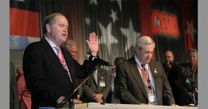 Bill Boarman, pictured here taking the oath of office as a member of CWA’s Executive Board, passed away on August 22.