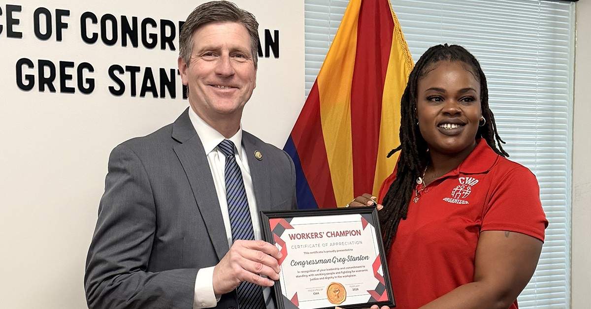 Since November of 2025, CWA political activists have made a special effort to thank our congressional allies and honor them as Workers’ Champions. Members and retirees visited congressional offices in CWA Districts 1, 2-13, 3, 4, 7, and 9. Members of IUE-CWA also met with elected officials to offer their thanks.