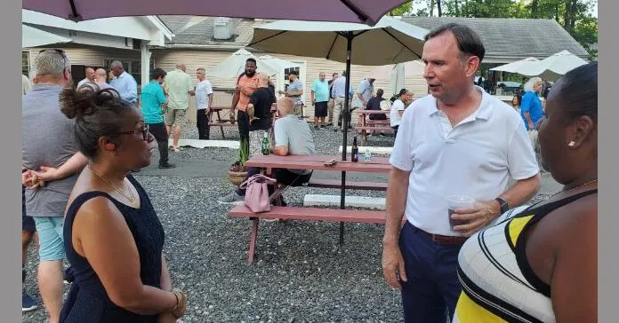 CWA Local 1102 Members Shoma Cappobiano and Carmen Arroyo engage Assemblyman Mike Cusick (D-N.Y.) about the importance of protecting their jobs and rights as workers.