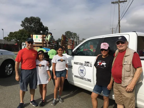 NABET-CWA Local 53 Vice President Joe Ayala and Local 53 Treasurer Louis Gabriele participated in the Los Angeles/ Long Beach Harbor Labor Coalition 38th Annual Labor Day Parade. The parade — with the theme “Union Proud—Union Strong” — brought together thousands of union members and their families, as well as state and local officials, for the march down Avalon Boulevard in Wilmington, CA.