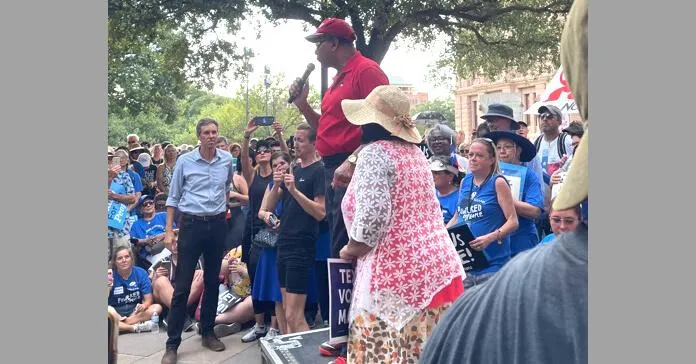 CWA District 6 President Claude Cummings, Jr., spoke to hundreds of labor and civil rights activists at a rally in support of voting rights at the Texas state capitol in Austin on June 20.