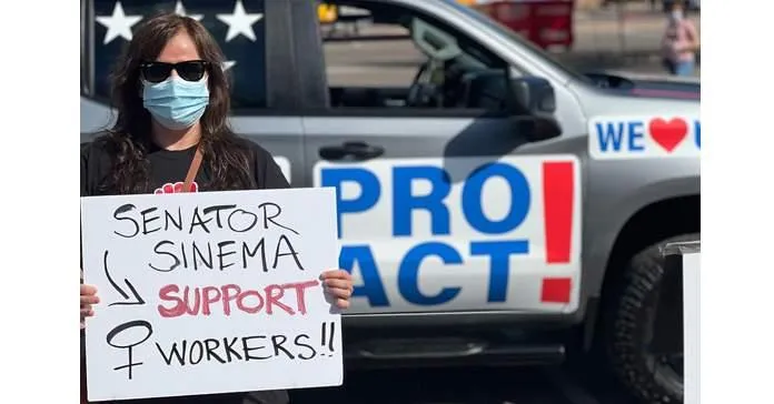 Last Saturday, the OUR Revolution “Pick Up the Pen” pickup truck tour made a stop at the Women’s March in Arizona to call on Senator Kyrsten Sinema (D-Ariz.) and other members of Congress to pick up their pens and sign on to support the PRO Act. CWA National Legislative and Political Field Director Yolanda Bejarano spoke during the live event and reiterated the need to pass this critical legislation that would protect the rights of workers and ensure they have a voice on the job.